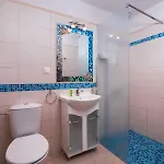 A Blue Breeze Aparthotel klímaberendezés, valamint tea- és kávéfőző berendezés biztosítja a szobák kényelmét. A fürdőszobában külön WC és zuhanyzó biztosított hajszárítóval és törölközőkkel együtt.